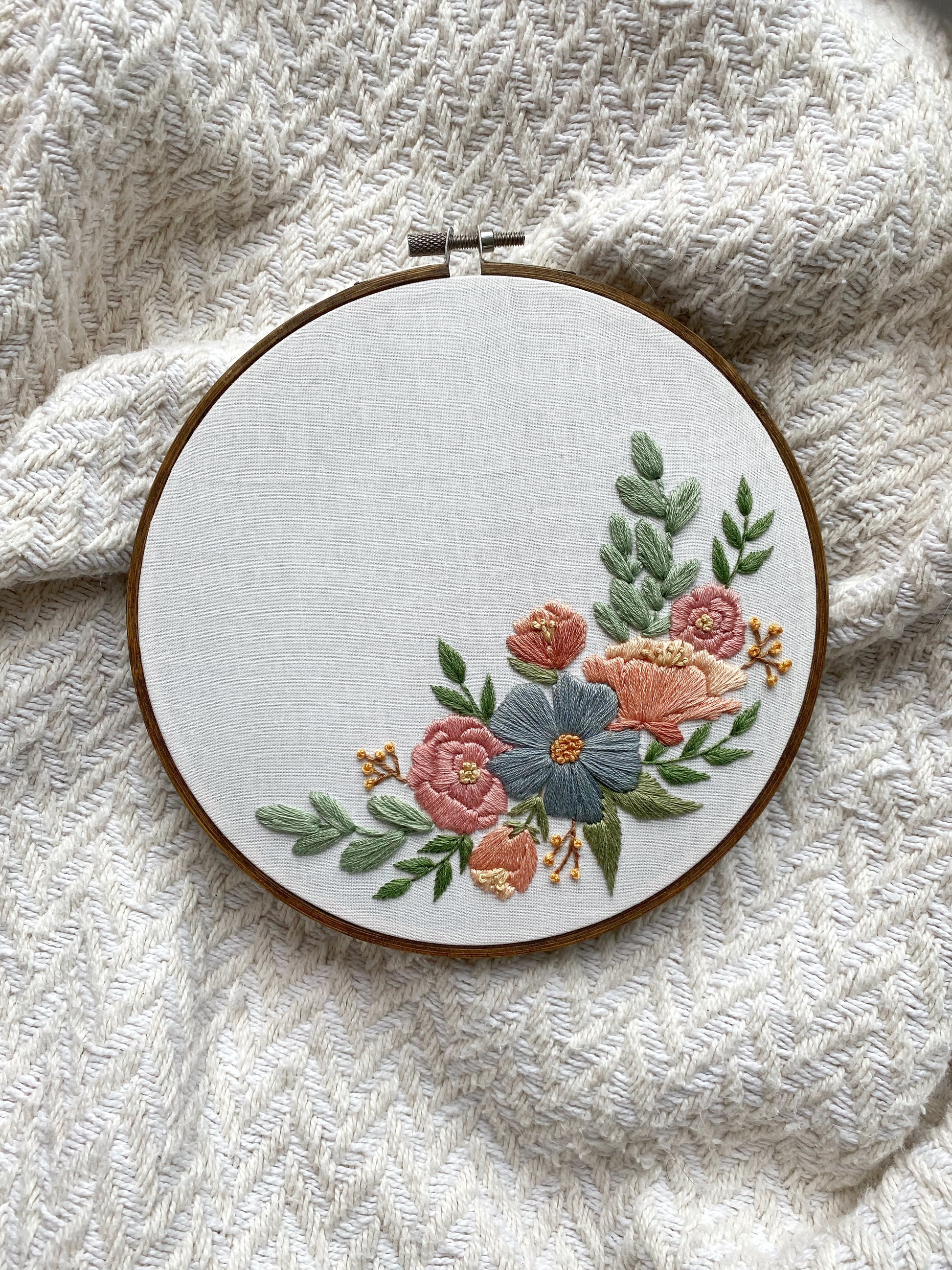 Crescent Florals || Stunning 7" Ready-to-Ship Embroidery Hoop Artwork
