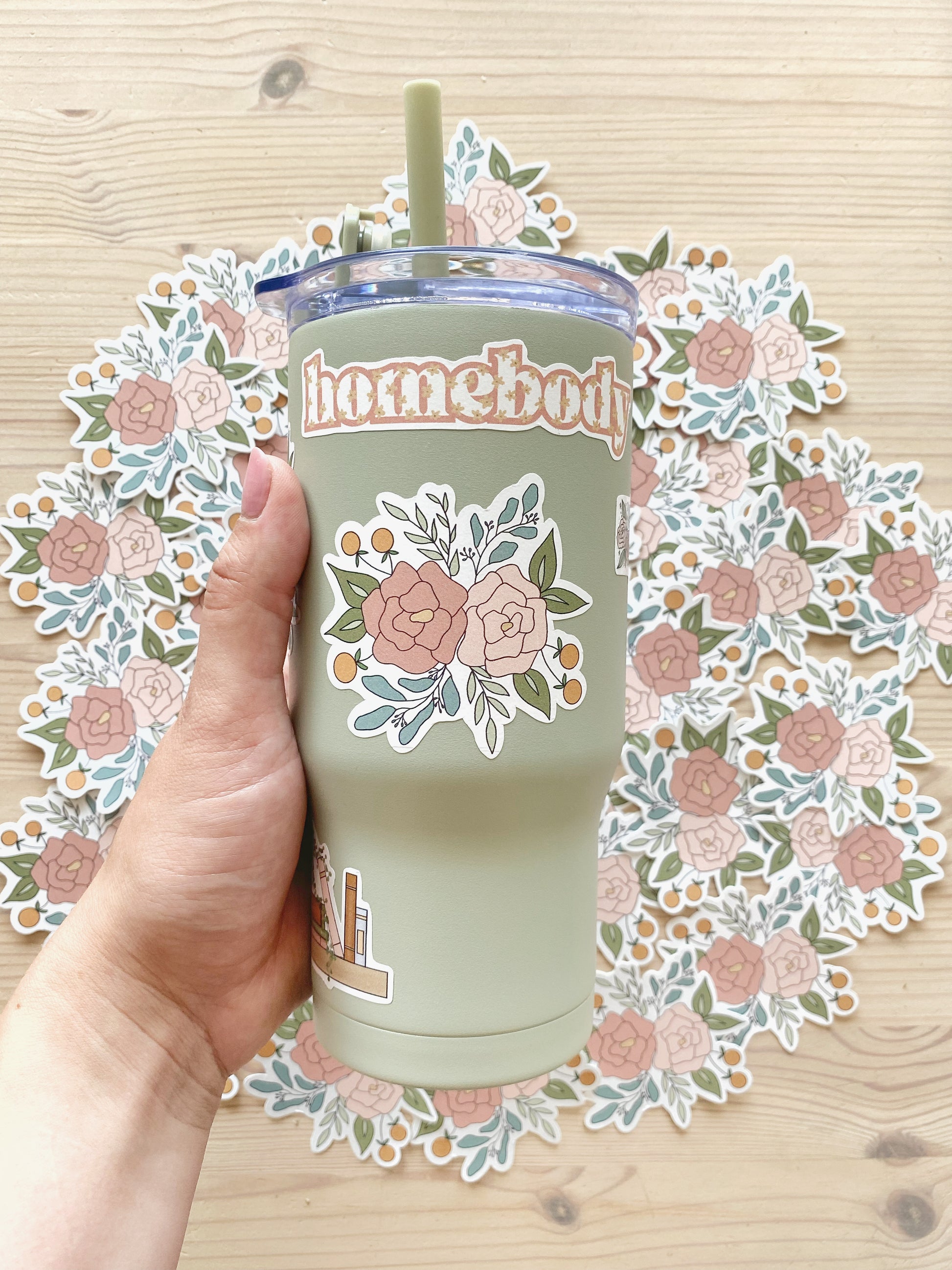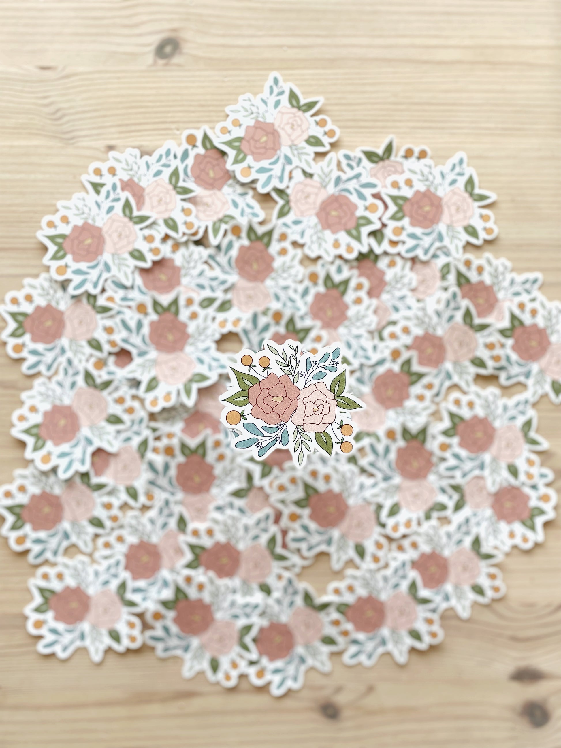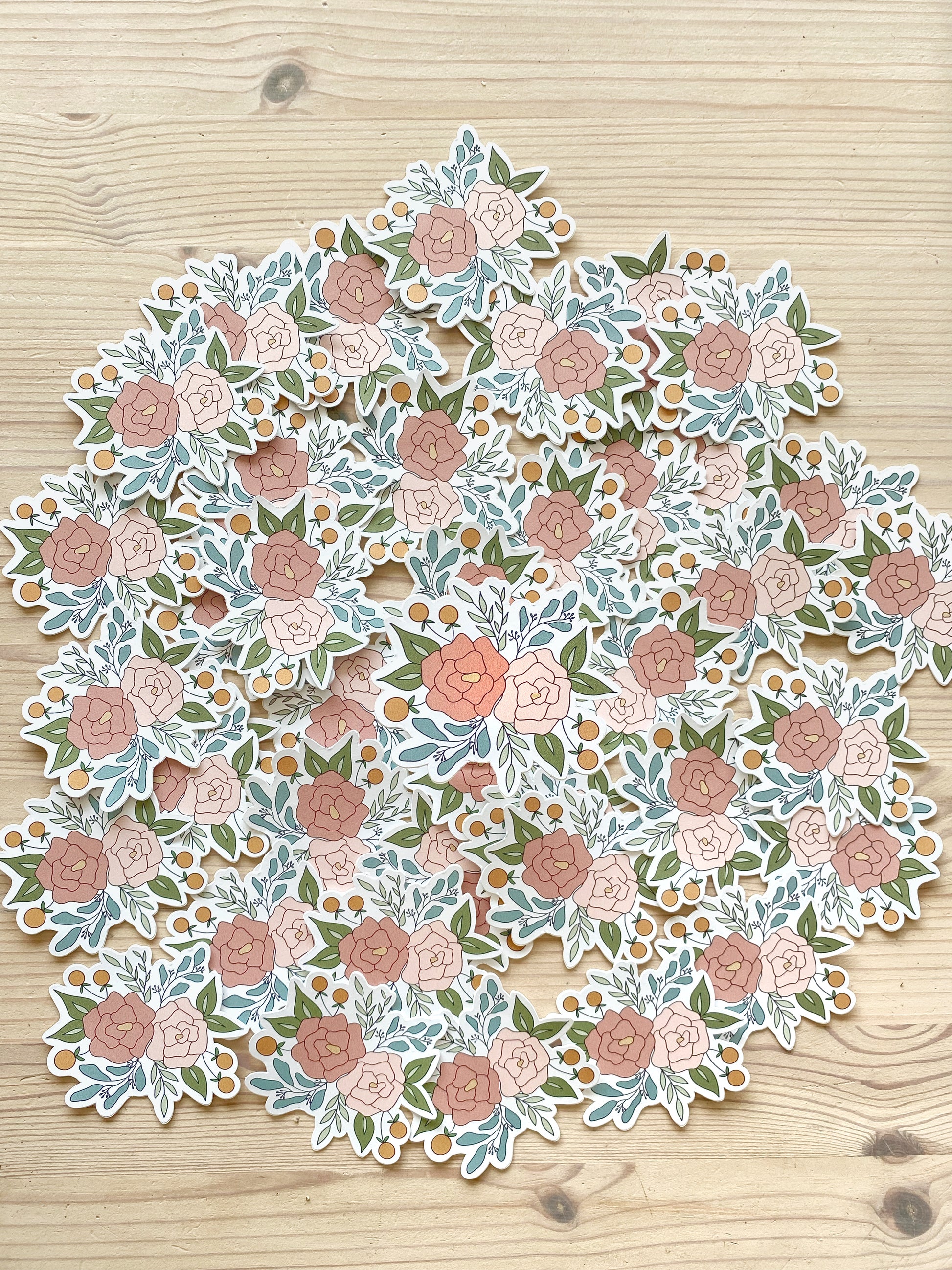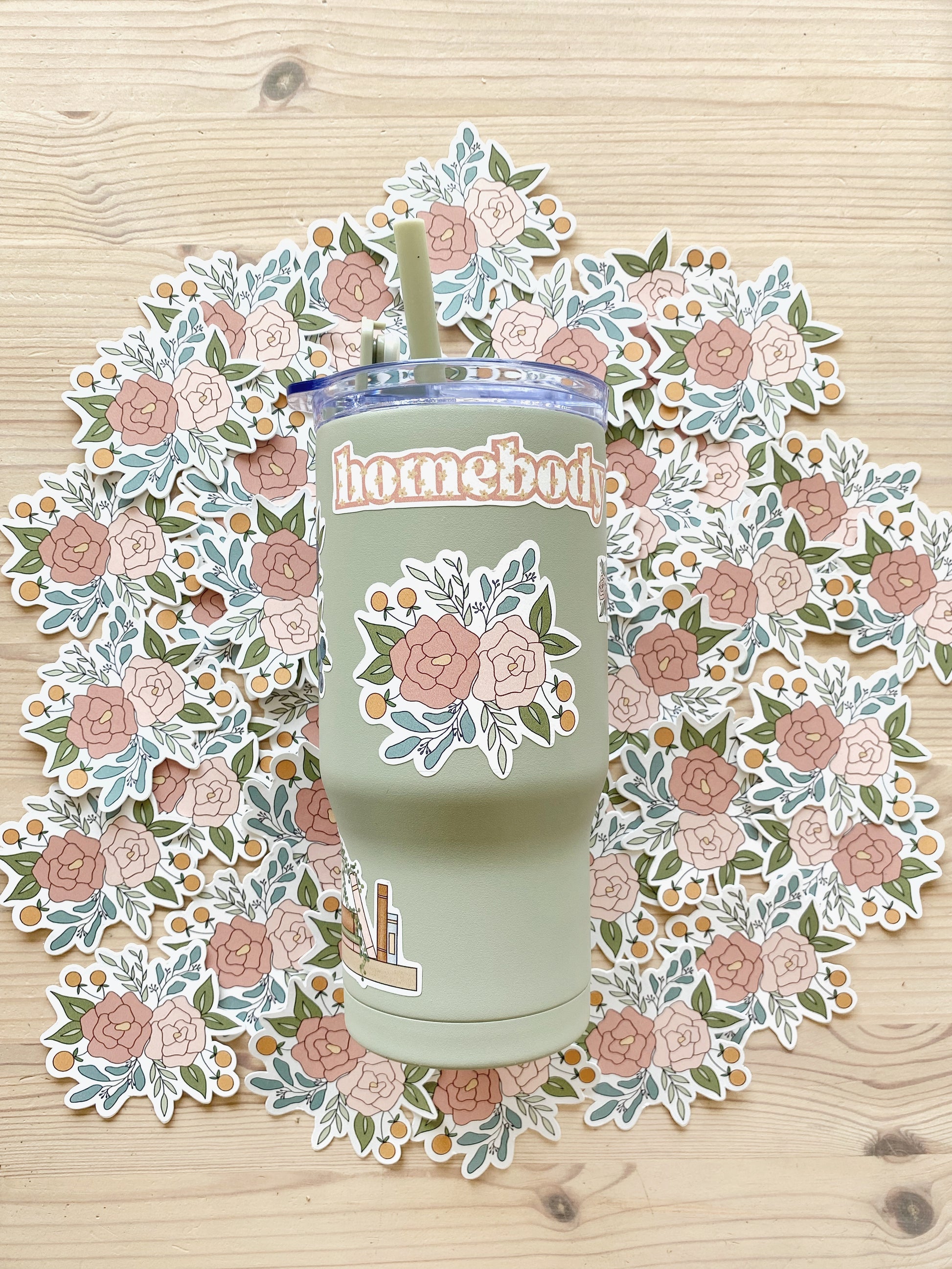 Introducing the Fresh Picked Peonies Sticker - a delightful addition to your collection of Homebody Handmade stickers! Crafted with care and inspired by one of our original embroidery hoops, this waterproof and scratch-resistant sticker is made from permanent, printed vinyl, ensuring its longevity and vibrant colours.